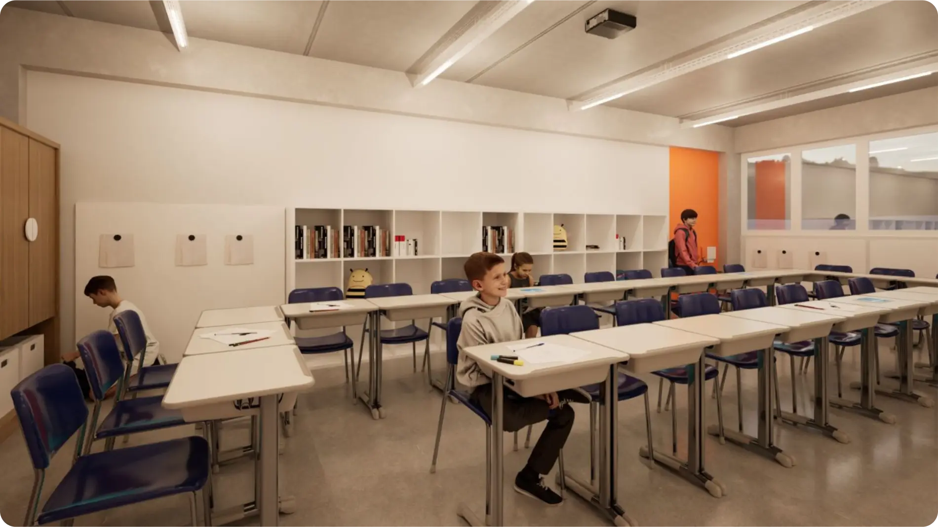 Nossos ambientes são climatizados, confortáveis e equipados com tecnologia de ponta, proporcionando uma experiência educacional enriquecedora. Além disso, espaços planejados para atividades pedagógicas, culturais e esportivas garantem uma formação completa, unindo aprendizado, convivência e bem-estar.